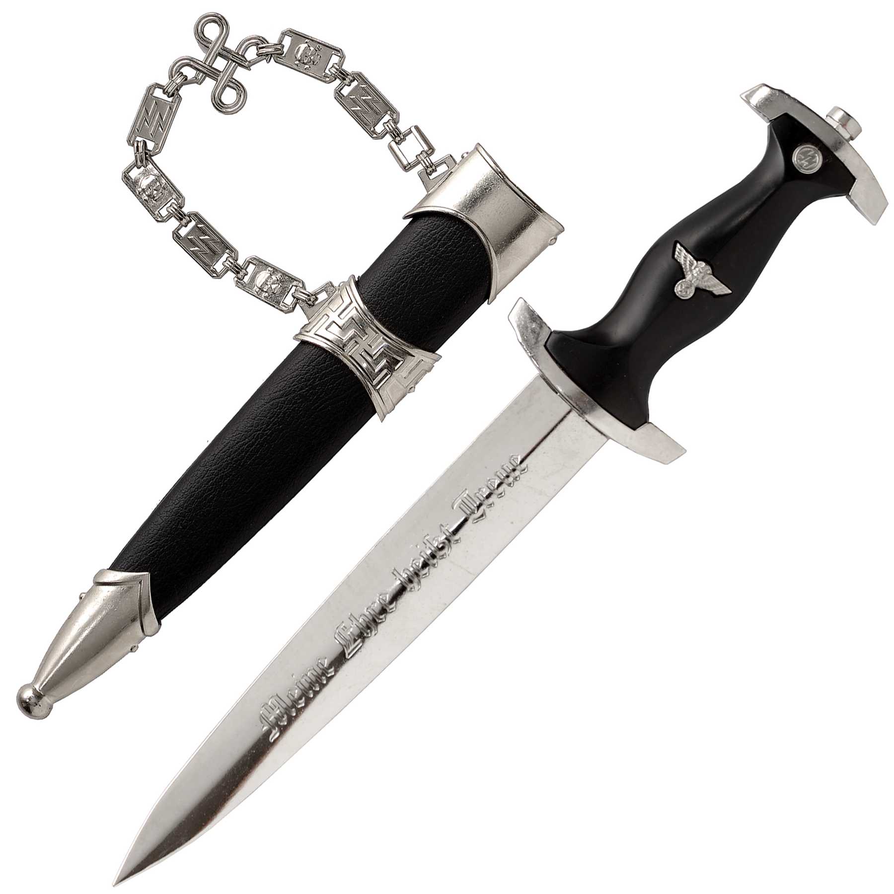 This is a replica of an SS German Dagger from 1933. The abbreviation of SS derived from the word Schutzstaffel which translates to Protection Squadron or defence corps. This is a replica steeped in history and a great collectable piece to have, it also comes with a chain like carrier.